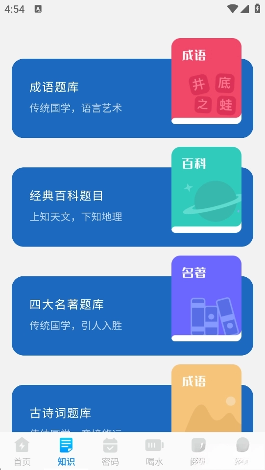 高效一键清理是一款创新整合系统优化与生活助理功能的多效工具应用。它不仅能快速清理手机垃圾、释放存储空间,更融合古诗词赏读、名著速览、密码生成管理及定时喝水提醒等模块,实现效率与人文关怀的独特结合。