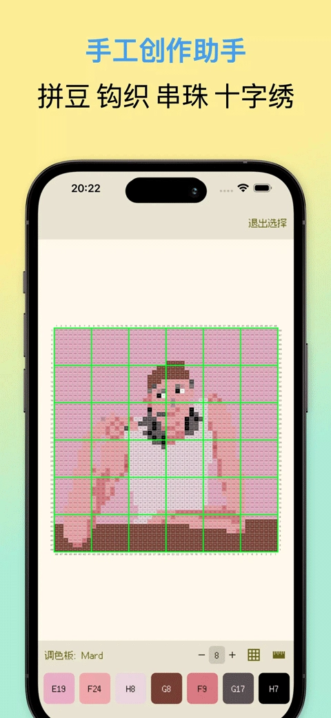 2、专门针对拼豆、钩织这类手工创作打造,导出的带色号图纸可直接用于辅助手工制作,具有很强的实用性。
