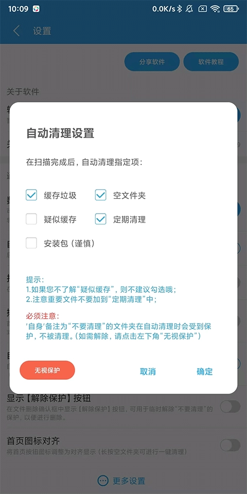 在软件设置中,也可以对定期清理进行相关设置,如下图: