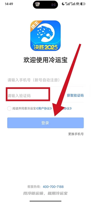 1、打开冷运宝,弹出协议弹窗后,点击同意,进入账号登录页面。