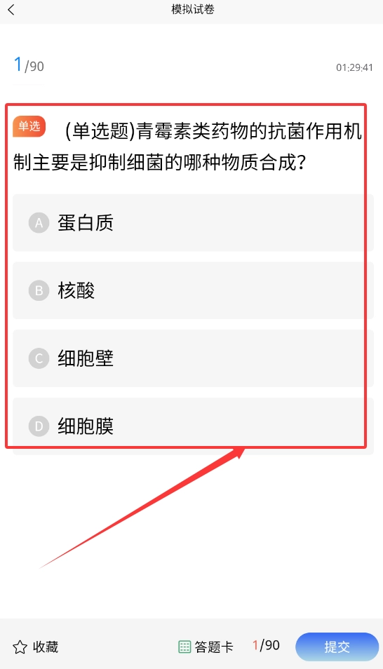 3、答题界面会呈现题目序号与倒计时,认真阅读题干及选项后选择答案,完成所有题目后提交即可查看成绩。