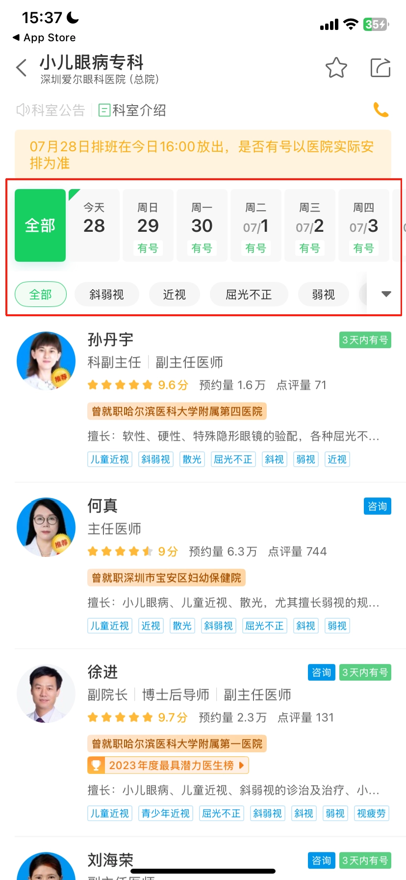 4、选择要挂号的日期和医生