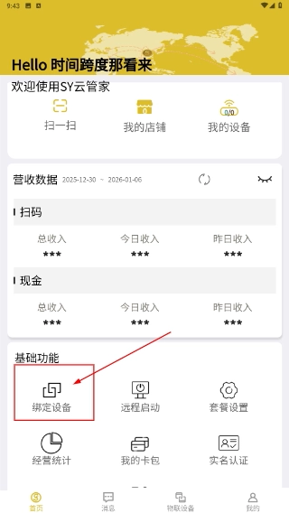 1、进入基础功能板块后,点击【绑定设备】选项,即可启动后续操作流程。