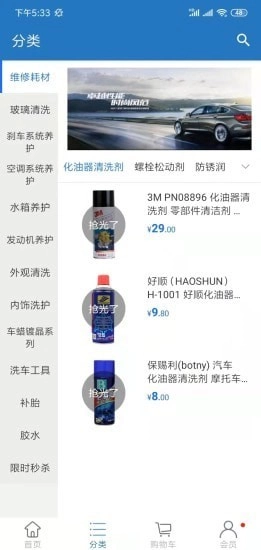 这是为维修企业量身打造的全品类汽车配件采购平台,覆盖了油品、轮胎、易损件、工具辅材、化工养护等多个类目。