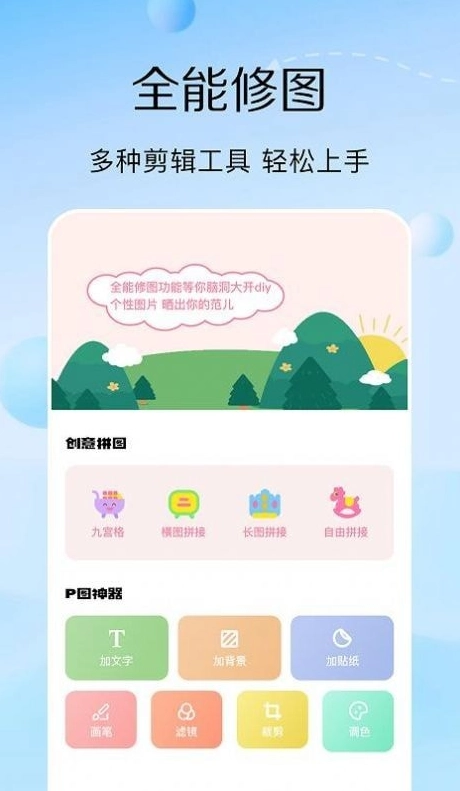 P图编辑,滤镜,贴纸,文字,涂鸦和其他效果