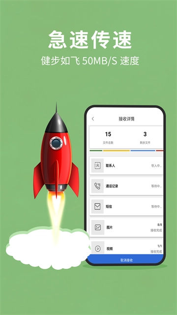 5、炫酷体验:超酷的用户体验,换机或传输文件时,只需用手机扫描对方手机即可轻松完成。