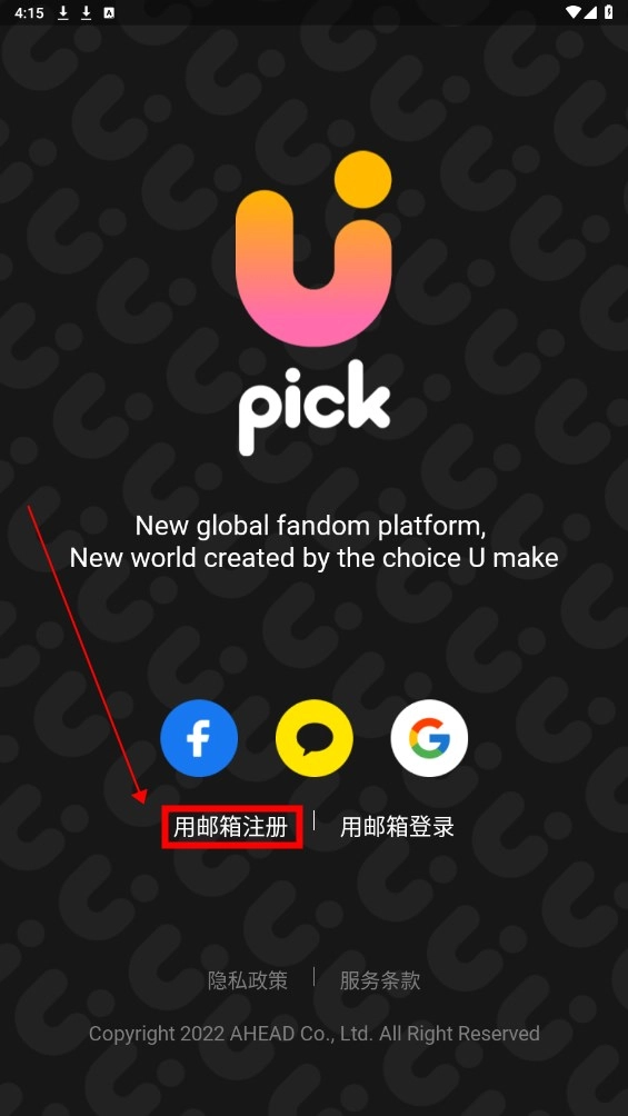 1、打开软件,在登录界面点击“用邮箱注册”选项。