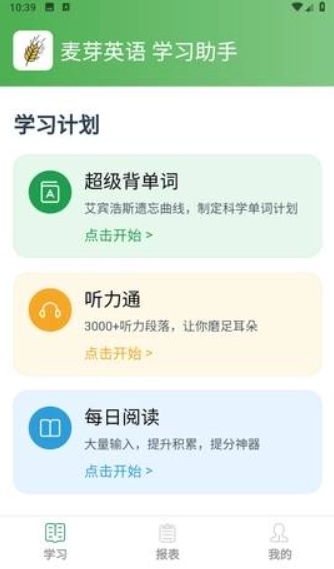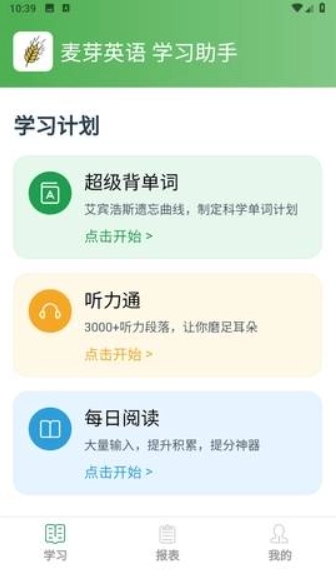 麦芽英语是一款专为英语学习打造的教育类应用。它依据艾宾浩斯遗忘曲线为用户定制科学的单词学习计划,帮助背过的单词在脑海中巩固记忆;平台提供3000+听力段落供练习,助力提升英语听力水平,同时对口语发音产生潜移默化的积极影响。此外,每日阅读功能十分实用,既能拓展词汇量,又能有效锻炼英语阅读能力。