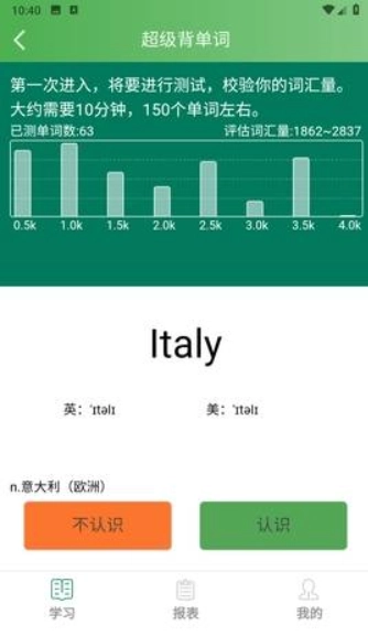 2、会通过约150个词汇测评题来判断当前的词汇量水平,进而制定相应的单词背诵计划。