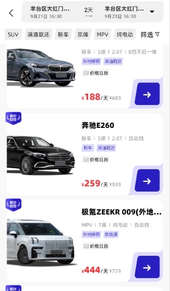 2.平台方面表示,其90%以上的车辆都是使用时长不超过1年的新车,并且均由主机厂直接供应。这就使得用户租到的车辆,大概率会是车况出色、内饰干净、配置贴合当下需求的车型,从而能有效避开租到老旧且有磨损车辆的不良体验。