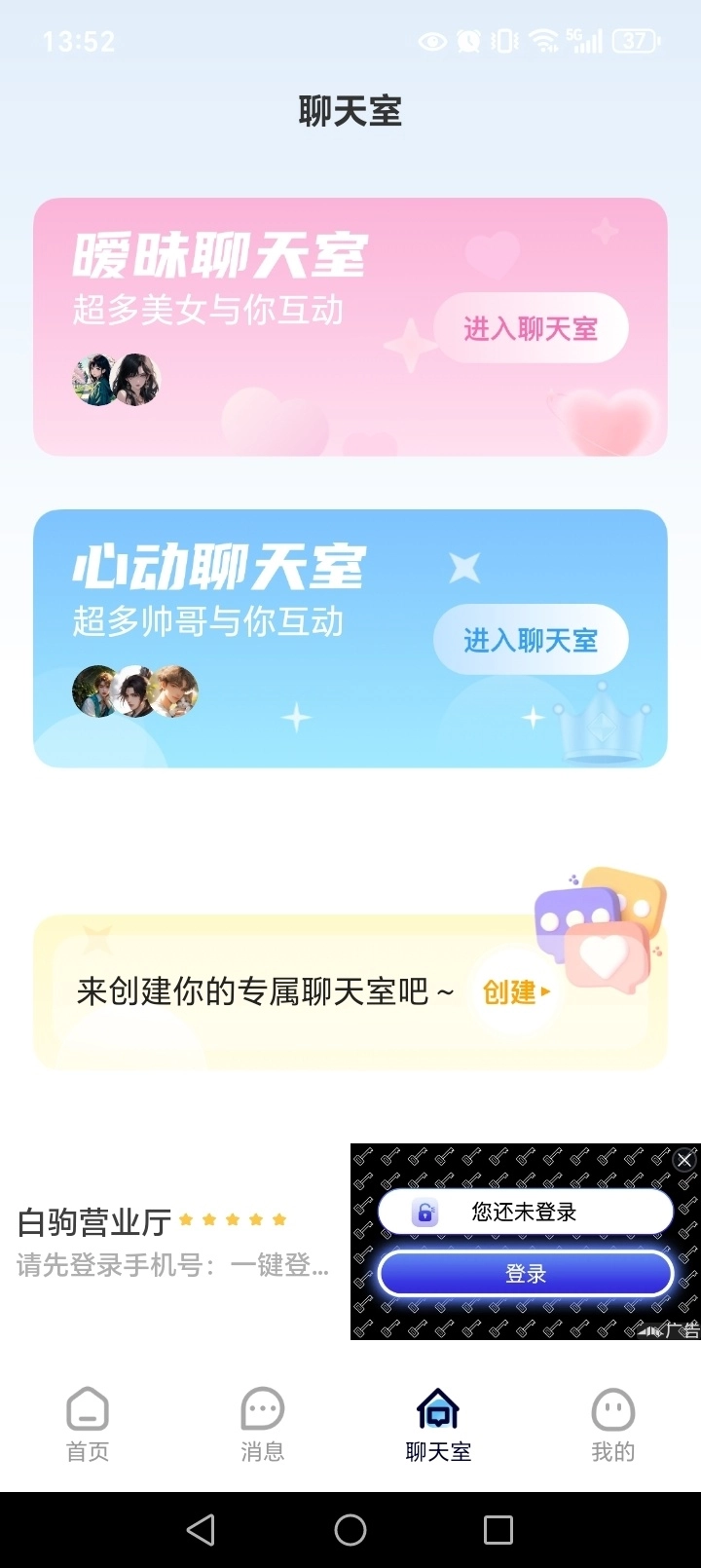点击【聊天室】,选择不同的聊天室去进行聊天