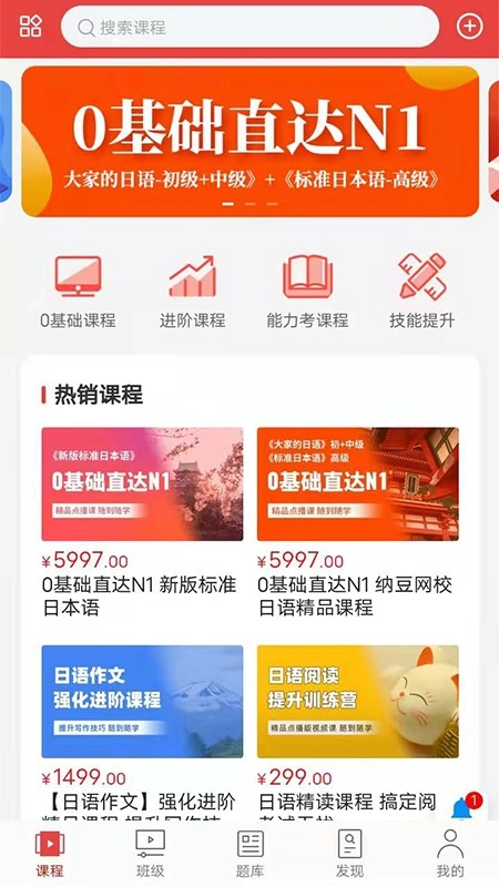 是不是想轻松学好日语,却一直找不到合适的方法?纳豆网校最新版本,是专门为从零基础到高阶的学习者打造的,课程内容紧紧贴合大家的实际需求。在这里,不仅有专业教师团队带来的系统化教学,还有海量实用资源可以随时查阅;不管是从五十音图入门,还是学习商务会话,不管是备考JLPT,还是准备CATTI翻译,多种课程能满足不同学习目标。直播课可以实时互动解答疑问,录播课能让你自由安排学习进度,再搭配助教全程督导,学习效果更有保障。手机和电脑都能使用,方便你高效利用碎片时间,喜欢的话就快来试试吧!