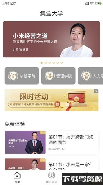 集盒大学是专门面向大学生打造的学习平台,拥有海量在线课程资源。在这里,学生能自主挑选各类大学课程,借助碎片时间开展系统化学习,从而切实增强个人能力与就业竞争力。平台聚集了大量高校学生,学习氛围十分浓厚。要是你想丰富自我、提升自己,不妨体验一下这款应用,数百门优质课程都可免费学习,感兴趣的话就来试试吧。