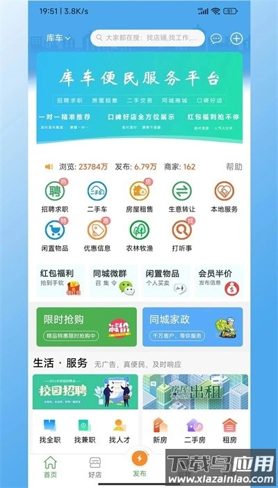 2.集成了求职招聘、生意转让、二手市场、本地服务等多功能模块;