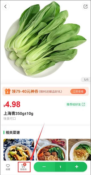 2、接着进入商品详情页,点击右下角绿色的“加入购物车”按钮,就能成功将商品添加到购物车中。