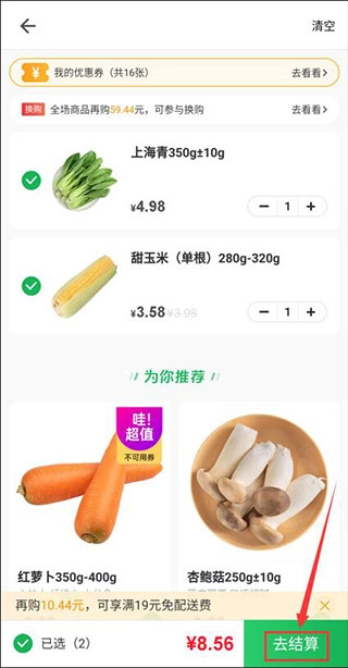 2、选择商品后,再点击“结算”。