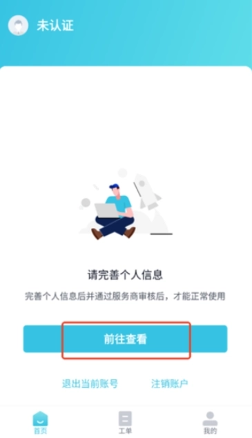 7.正式进入软件后,在首页点击“前往查看”按钮以完善个人信息。