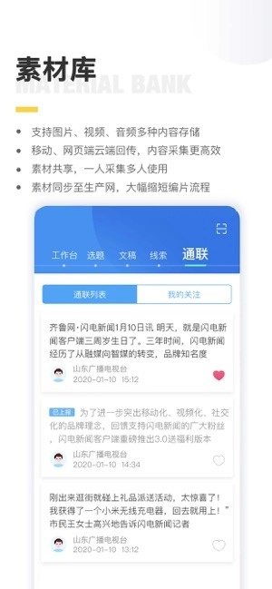 闪电云平台的最新版本是一款专门面向广电媒体与新媒体机构打造的高效协作工具,借助省市区县三级联动机制达成资源共享;平台融合了视频直播、素材管理、线索采集等核心功能,支持多终端内容回传以及云端协同编辑。它的智能化内容分发系统能够快速适配电视、广播、报纸等不同媒介渠道,大幅提高新闻采编效率。移动直播模块支持多路信号切换和实时导播功能,海量素材库则提供便捷的分类检索与多人协作支持。这款工具可以有效解决媒体机构资源浪费的问题,实现内容价值的最大化,感兴趣的用户现在就可以进行体验。