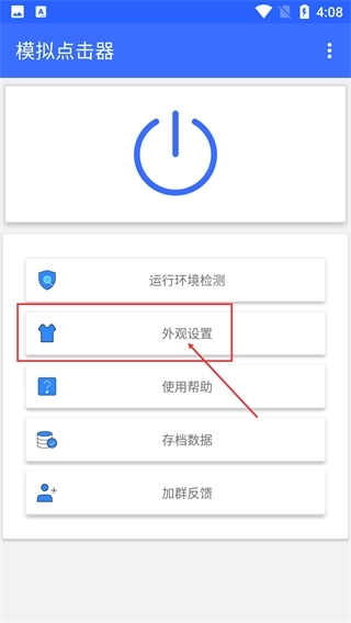 进入模拟点击器的主界面后,能看到【运行环境检测】【外观设置】等功能选项,点击【外观设置】即可进入对应的配置页面。