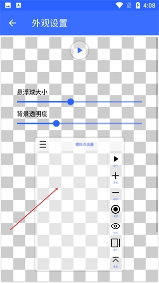 3、在【外观设置】页面,能够借助滑块来调节【悬浮球大小】和【背景透明度】,并且可以查看悬浮球的操作按钮,以此完成外观方面的相关配置。