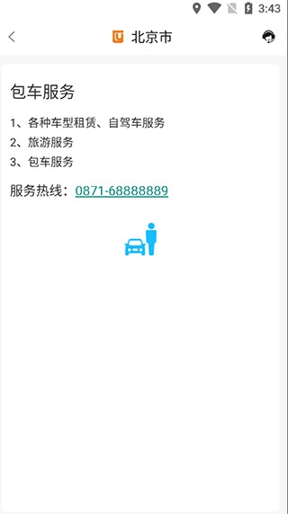 2.进入之后我们可以看到包车服务的具体内容以及服务的联系热线。