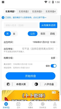 2、填写个人资料:启动玄易排盘软件后,填写姓名、性别和出生的精确时间。务必保证时间精准,因为哪怕是微小的误差都可能对排盘结果产生影响。