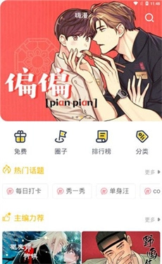 1、嗨漫画的界面设计得十分简洁清晰,用户能很轻松地找到自己想看的漫画内容。