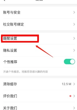 进入设置后,选择“提醒设置”。