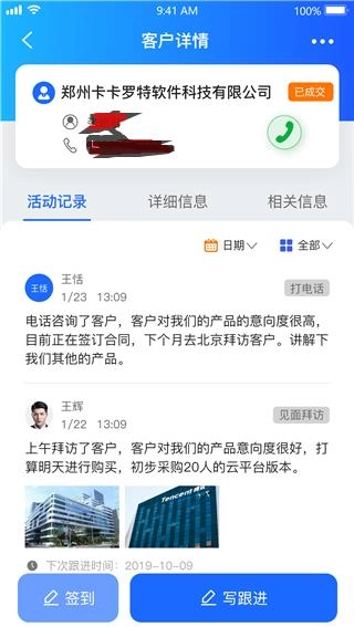 在功能模块中,支持创建客户、添加商机、发布任务以及撰写日志等操作。2、通过“客户与联系人”板块,能够查看已成交和未成交的客户信息。