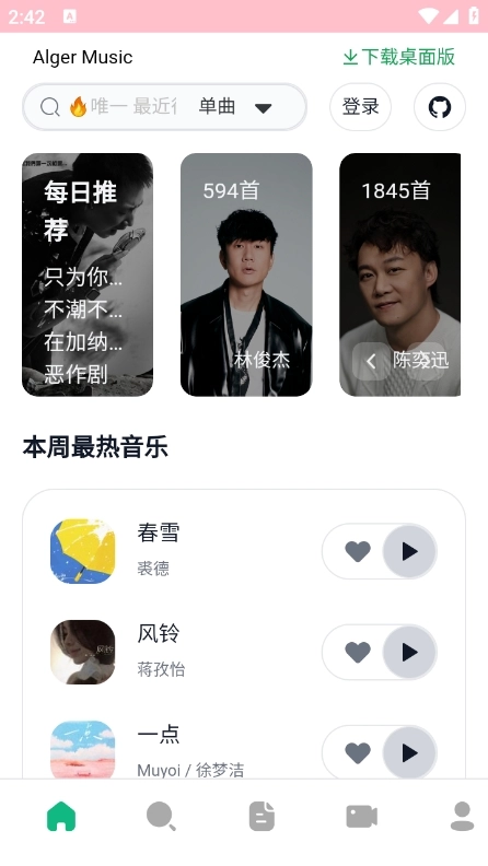 AlgerMusicPlayer汇聚了全球范围内的海量音乐资源,包含多种语言、风格与流派,能够满足各类用户群体的需求。不管你偏爱流行、摇滚、电子亦或是古典音乐,在这里总能找到契合你心意的旋律。