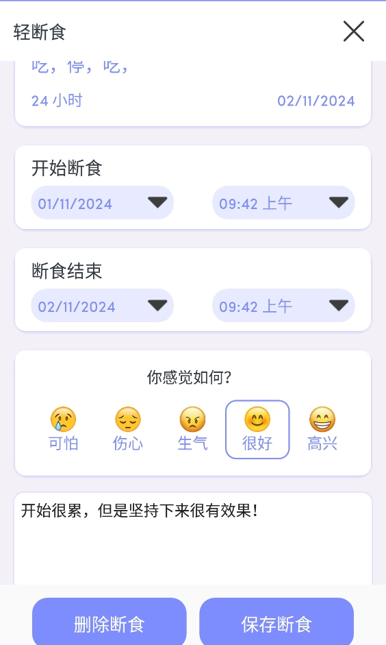 当你选定的断食方案结束后,不妨把断食过程中的身心体验记录下来,也可以梳理下后续进行断食时需要留意的细节。
