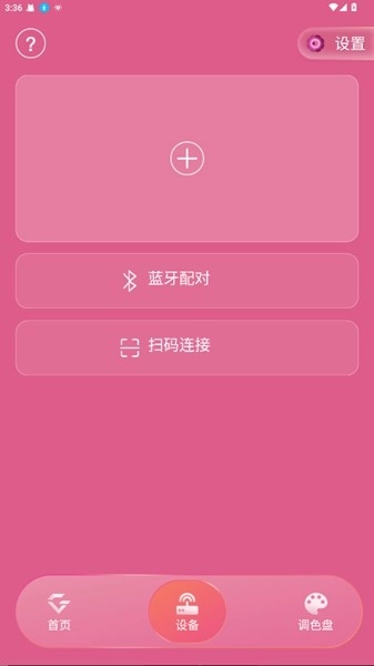 长按荧光棒5秒开机后,荧光棒会进入蓝牙配对模式;此时在手机上点击添加设备的加号按钮,并将荧光棒贴近手机进行配对操作。